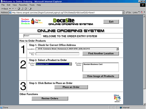 already have log-in privilege. Once into the system, they can order from a list of available products.